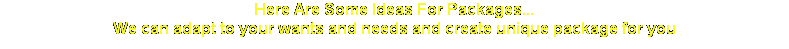 | Basic Party Package For The Simple Love Of Music Sound System for up to 200 guests Chorded Microphone Consultation & Music Planning Party DJ for up to 6 hours Delivery, Setup & Teardown TOTAL $695 |